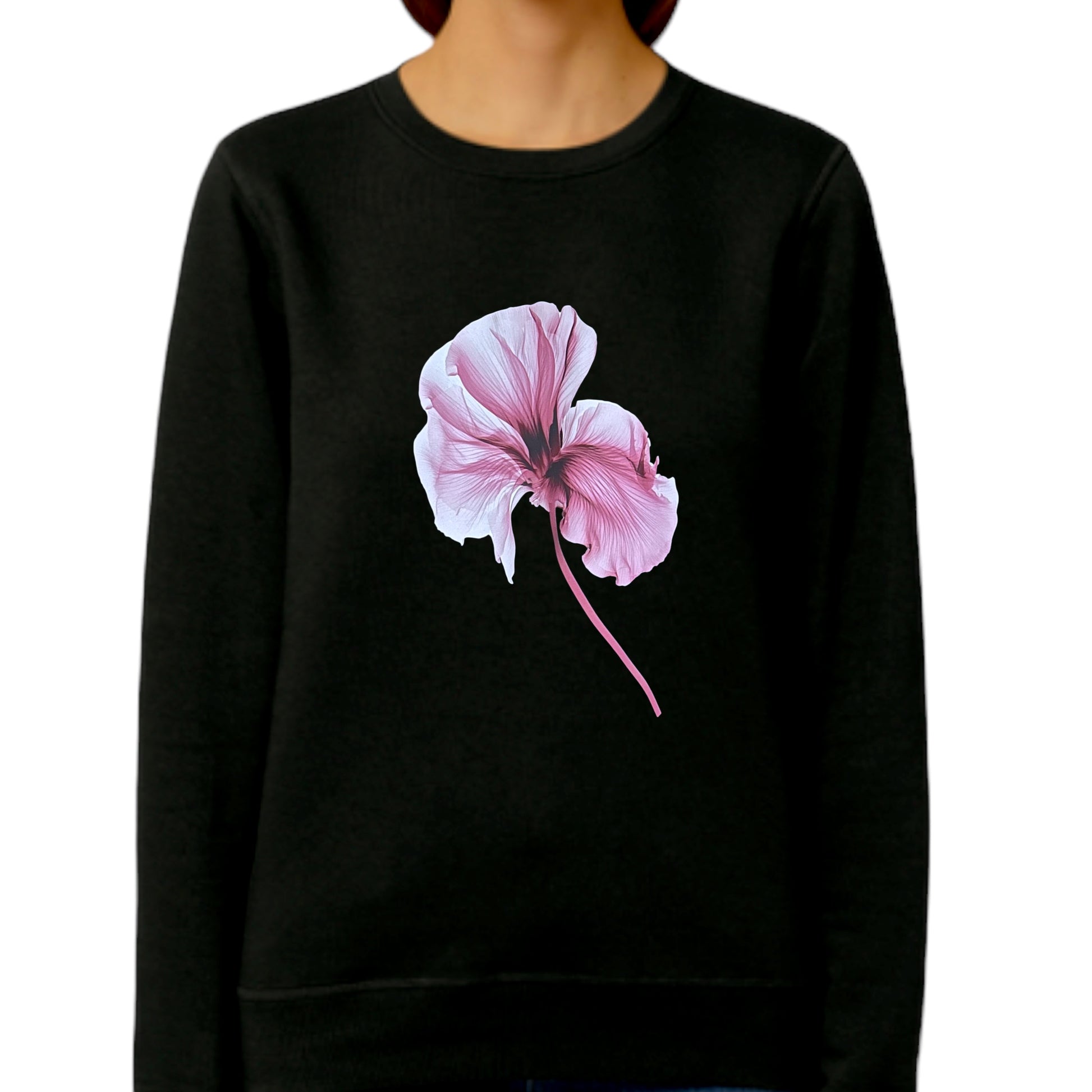 Pink Transparent flower print on ultra soft touch sweatshirt.